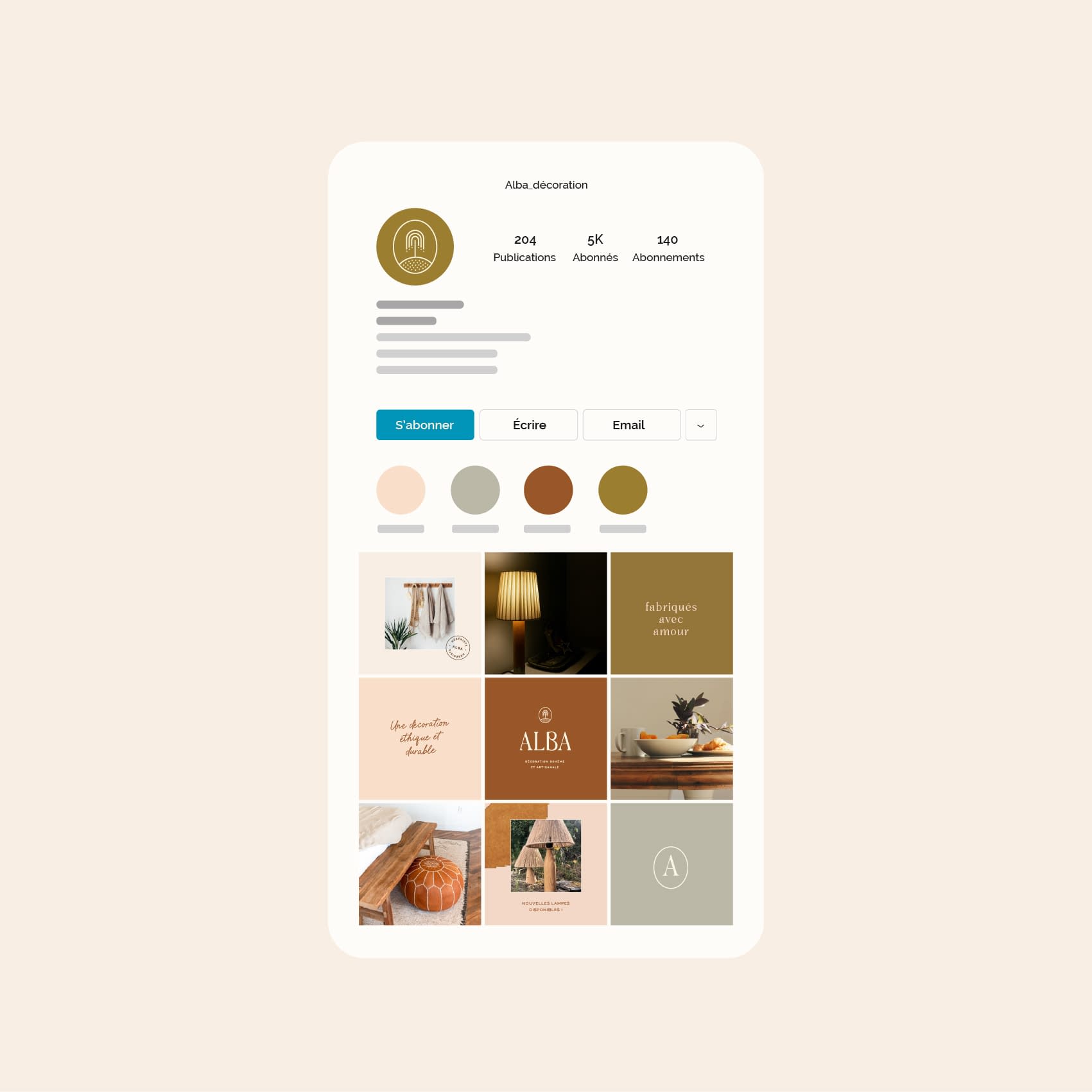 Julie est ébéniste. Elle réalise des créations en bois (installations, meubles, décoration) bohèmes et durables, fabriqués dans des matériaux nobles. En développant son activité, elle ressent le besoin de créer une identité visuelle pour se démarquer et s’imposer sur son marché.