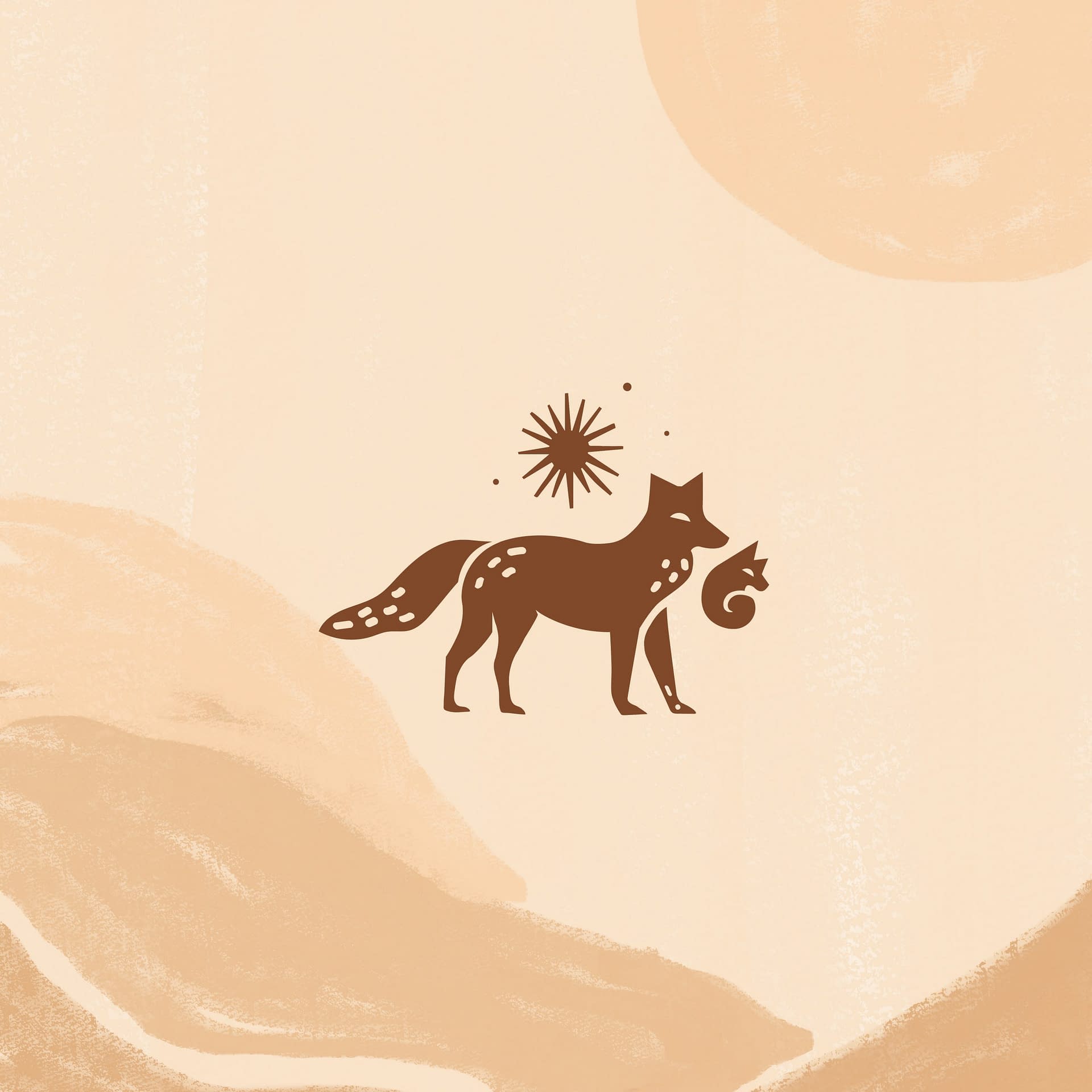 Pour aider Charlène à incarner pleinement sa vision, je lui propose un animal totem : le renard ! Intelligent, indompté mais aussi capable de grande tendresse, il convient parfaitement son caractère. Nous décidons de le représenter sous la forme d’une petite famille, pour mieux souligner la spécialité de Charlène. il se décline sous d’autres versions (en maman louve, en solo ou en renardeaux).