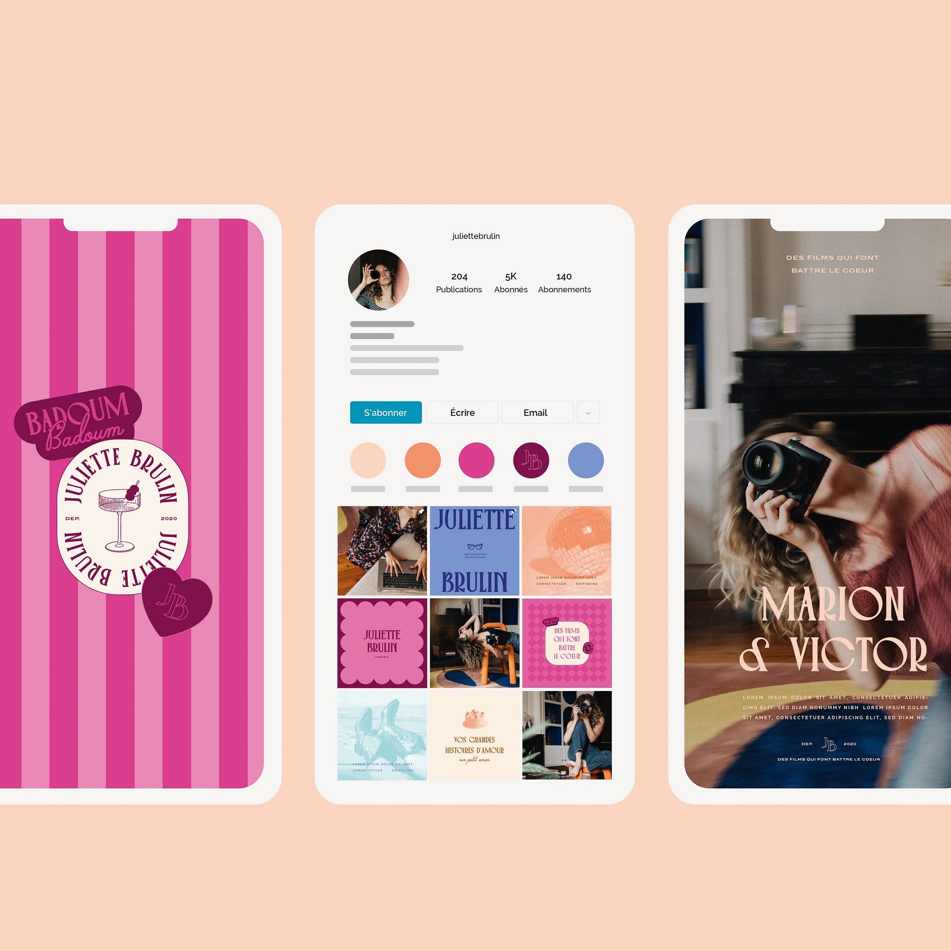 Pour compléter l’univers rétro-funk de Juliette, des motifs géométriques et des photos en risographie viennent souligner son amour du vintage et apporter une touche d’originalité.
