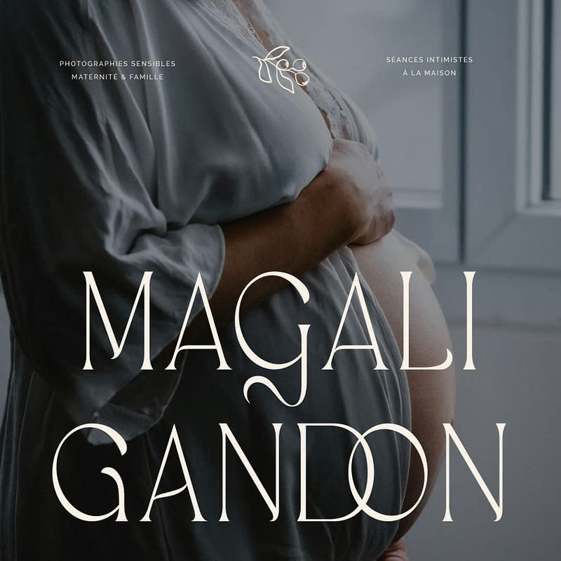 Magali a une esthétique qui rappelle les tableaux des maîtres de la renaissance. Ses compositions sont étudiées, la lumière douce en clair-obscure apporte une ambiance chaleureuse et intimiste. Je ‘m’inspire de cet univers pour lui proposer un logo faussement classique, aux lettres très travaillées. Son symbole, de petites baies sauvages, évoque la nature foisonnante qui sert de décor à ses portraits.